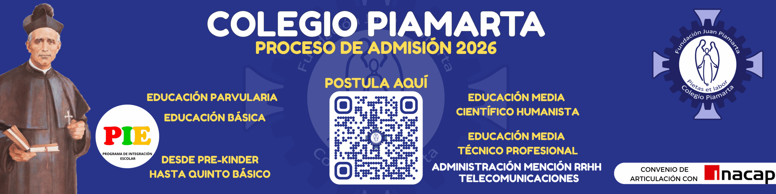 Somos un establecimiento educacional católico y gratuito con un Proyecto Educativo Evangelizador basado en el carisma de San Juan Bautista Piamarta.
