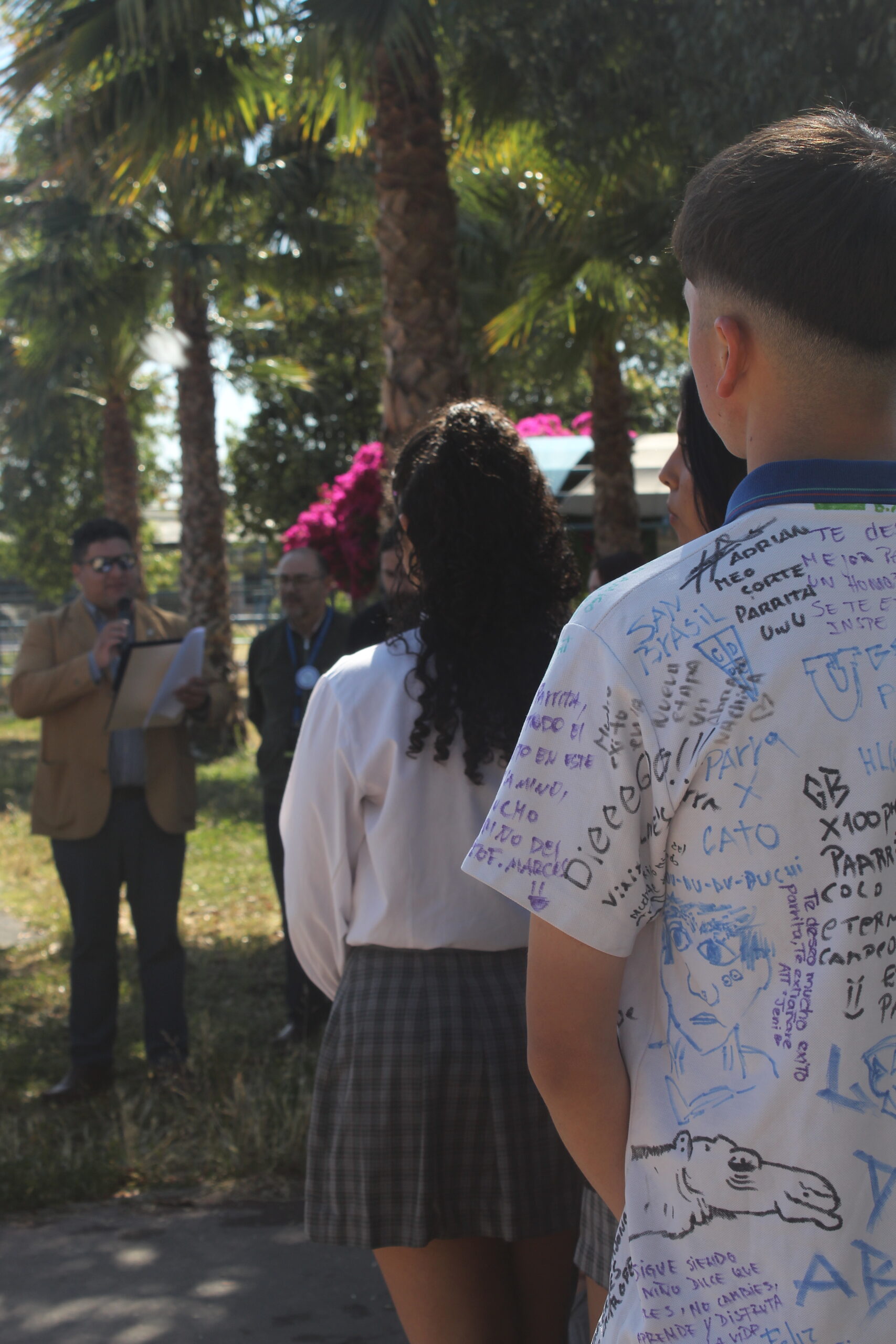 🙏 La emotiva jornada comenzó con una Oración de Envío, momento en el que el retoño fue bendecido para que su crecimiento sea fuerte y fructífero. Posteriormente, cada estudiante presente se encargó de regar directamente el Peumo con sus propias manos, un acto personal que sella su promesa. Este gesto es una clara manifestación de la promesa de un futuro que no espera, un futuro que depende enteramente de la acción de nosotros.
