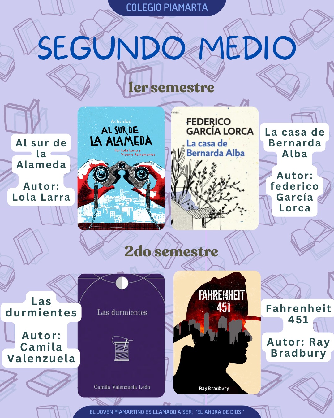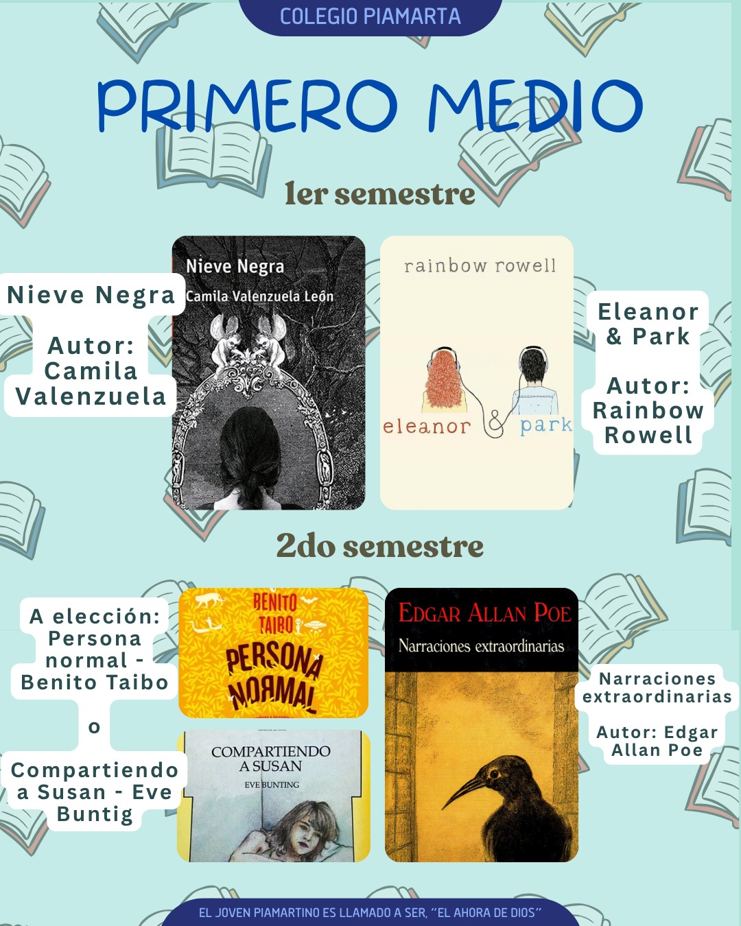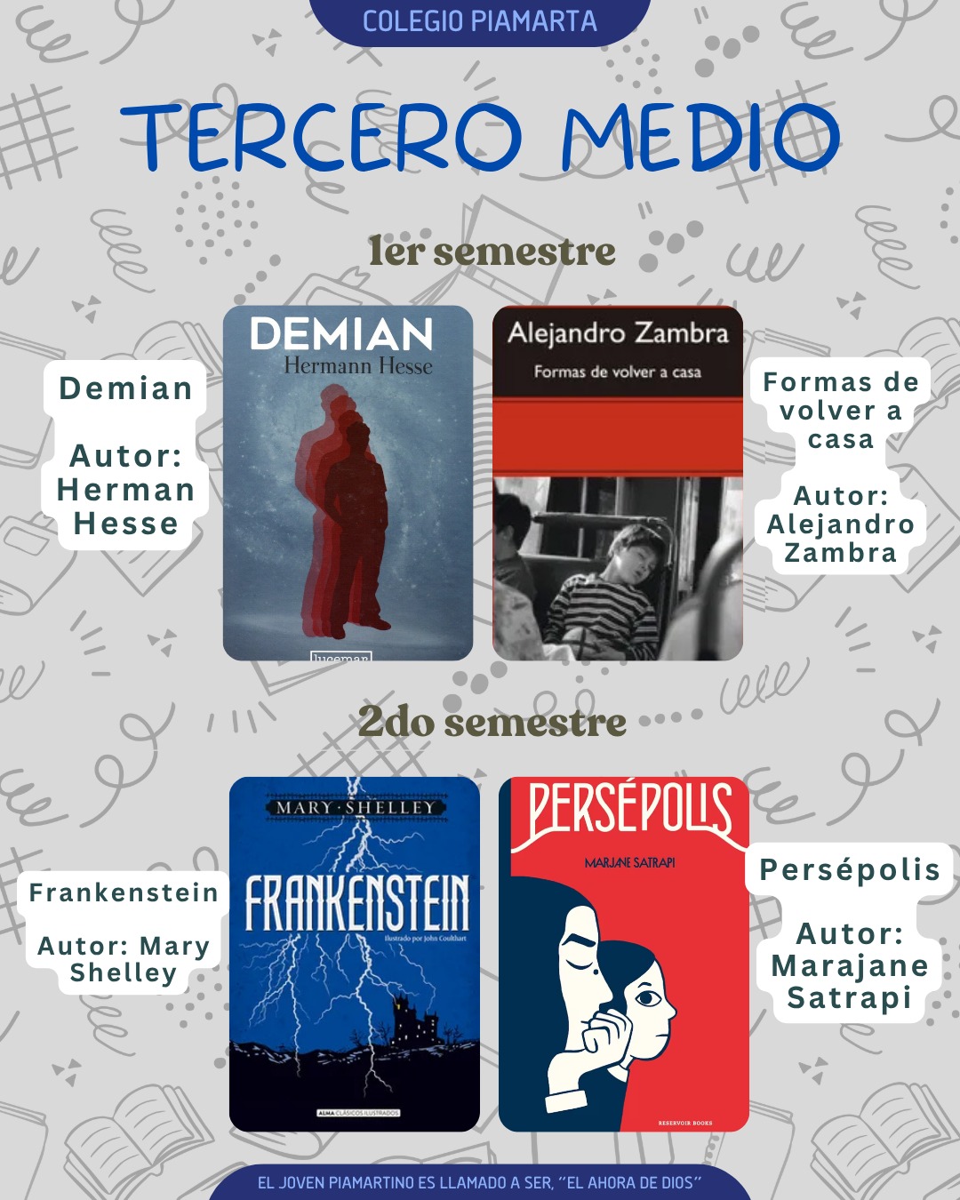 📖 A través de una selección de obras diversas buscamos que los jóvenes piamartinos desarrollen una visión del mundo reflexiva y argumentativa integrando los valores institucionales en cada debate literario.